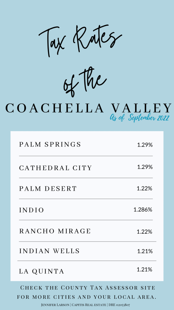 Here is a breakdown of the most popular cities in the Coachella Valley and their respective property tax rates.