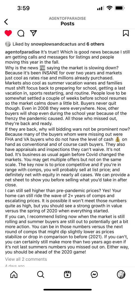 Rates have dipped below 5% for buyers which is reminiscent of pre-pandemic levels. Home prices are dropping as well and sellers are providing incentive’s towards closing. Now is a time to buy!