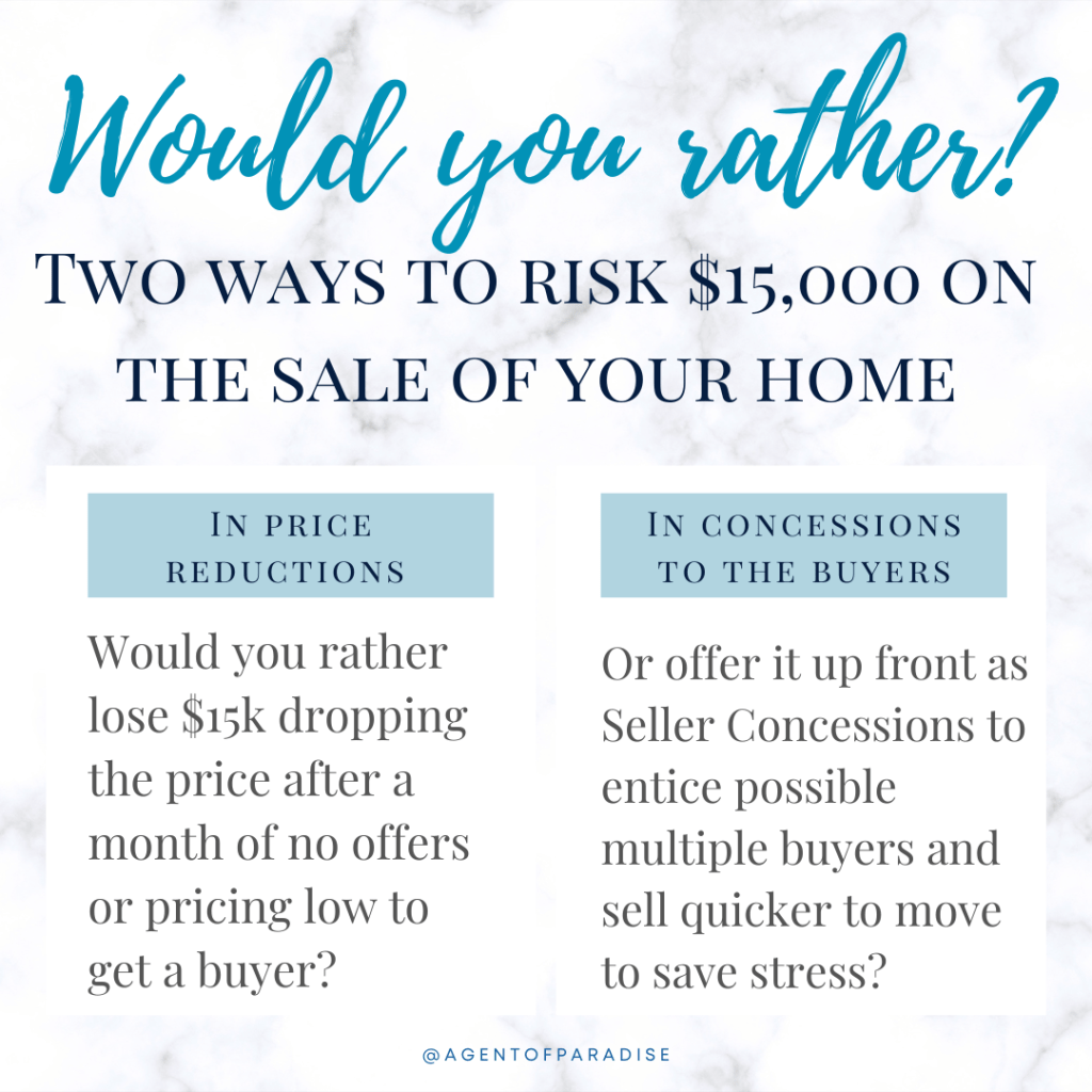 If you are prepping to become a seller in this market there are a couple of things to know as I stated in my last post. One of them is an adequate pricing strategy and enticing buyers financing to lure them in and pick your home over the competition. You can either do it to price lower or in subsequent price reductions over the span of weeks; OR, you can instantly offer in your listing to fund $15,000 towards the buyer’s lender to buy down their rate from around 7% to around 5% for a temporary buy down that helps them qualify better as well as save approximately that amount on their mortgage in just two years because they will have much lower monthly payments.
