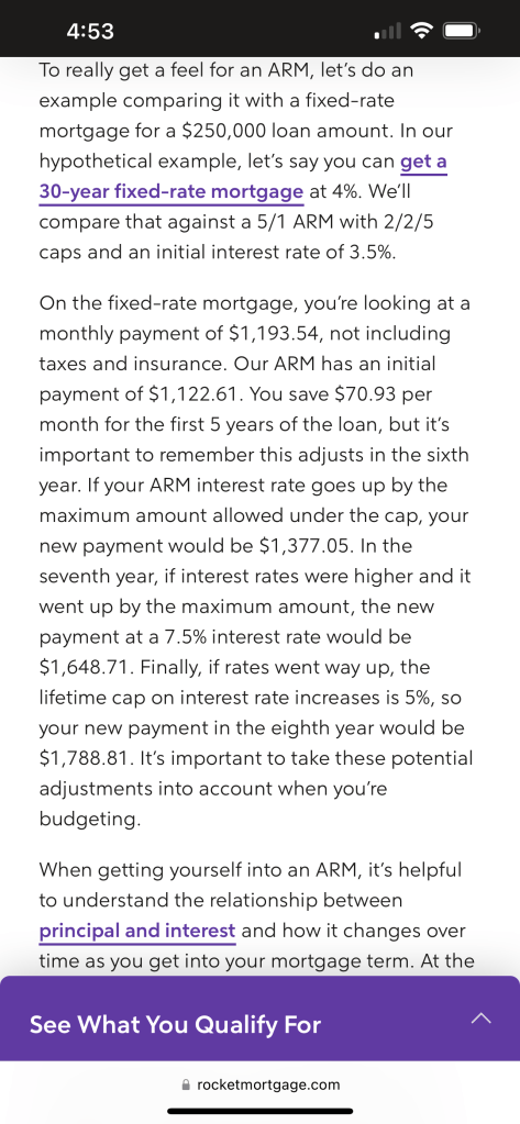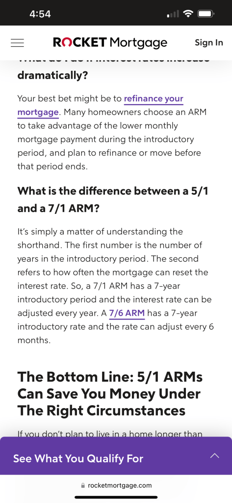 Remember that ARMs don’t have an up front buy down cost but they can raise over time up to 10% with current offerings so planning to refinance in the future is something to prepare for.