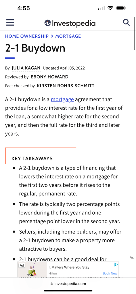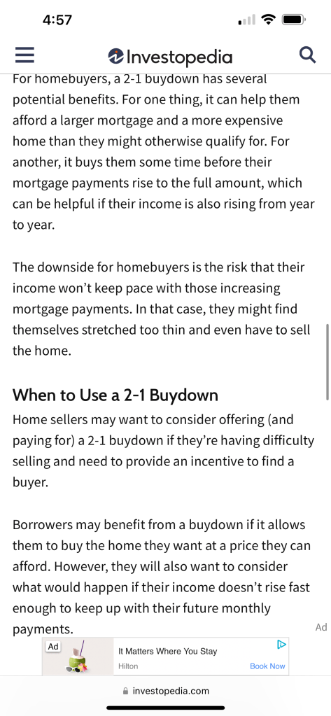There are 3 main types of Buydown scenarios but the two buyers need to know are the 2-1 and 3-2-1 programs. These are what actually save you money on your mortgage and over time because rates are what drive a mortgage payment so high; not sale price as I have mentioned many times before. Taking $15,000 from the seller towards saving money on interest will lower you payment a lot while a $15,000 offer under list won’t save you much at all. So when your monthly payment is significantly lower every month it gives you a greater quality of life and ability to put money away. It puts money back in your bank account.
