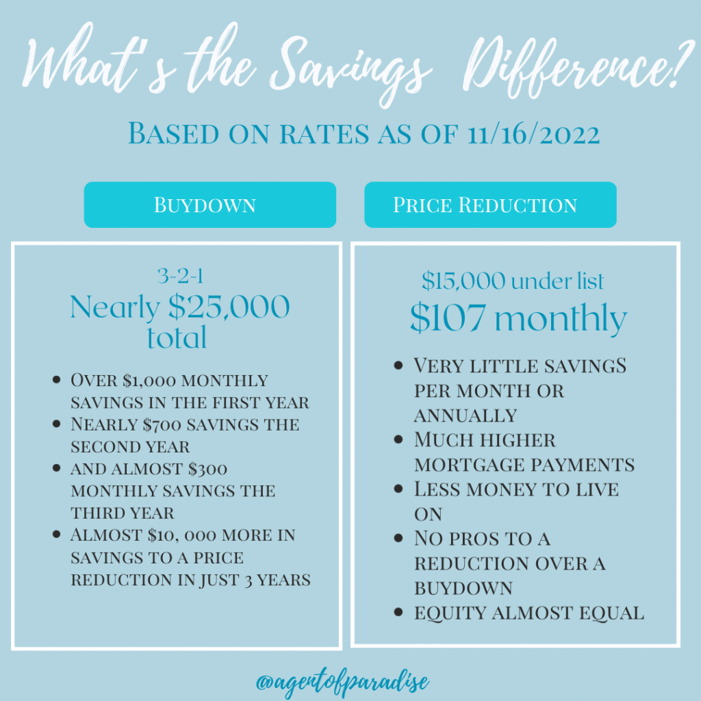 If you’re a buyer looking and you are still confused or need more additional information on how this works and why it’s far superior in savings to negotiating a sale price, make sure you give me a call or text right away so I can further explain how it works and show you more math examples why it’s better to get the money as a rate reduction versus a price reduction. One saves twice as much nearly in just 3 years. Contact information below.