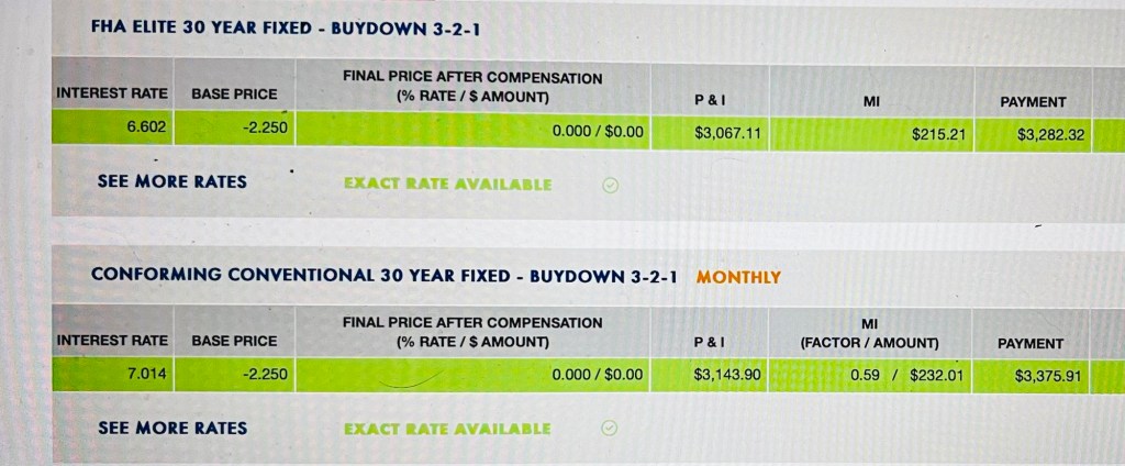 To get a total APR under 5% you need better credit. If you’re working on your credit still, make sure you reach out and work with me. It’s free and easy. If you’re ready to buy, THIS is how you get the best rate. Get those buy down points so you save money and the seller will net the same price. Win Win!